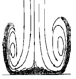 Cross section of a conceptual vortex ring model of a microburst (Caracena, 1982; 1987). (From: Microbursts: A Handbook for Visual Identification by Caracena, et al., 1989)